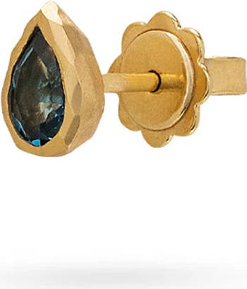 Drop Stud with Natural Deep Blue Topaz of 0.4 ct. Eclectic design with a bold pear shape gemstone set in a precious bezel with faceted finish. 100% Handmade in Italy.