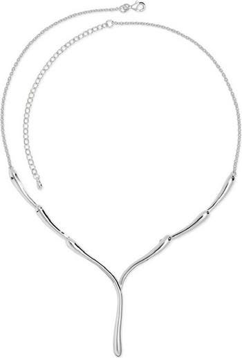 This elegant V-shaped Drop Necklace from Lucy Quartermaine’s iconic Drop Collection features elongated silver drops arranged in a fluid, romantic pattern. The classic V-shape beautifully elongates the neck, adding sophistication to any outfit. Handcrafted from 925 sterling silver with a rhodium overlay, this necklace is both durable and radiant. Adjustable from 16" to 20", it’s perfect for everyday wear or special occasions.