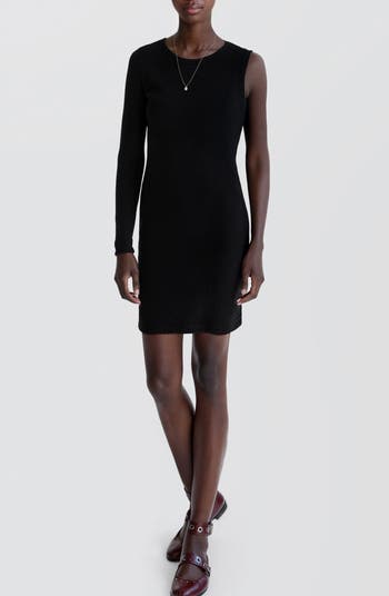 A single long sleeve boosts the contemporary attitude of this ribbed minidress that's perfect for a night out.