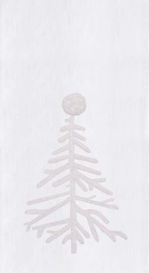 This Single Tree Kitchen Towel is a flour sack towel featuring a beautifully embroidered, simplistic tree design in crisp white, complemented by a delightful pom-pom tufted tree topper that adds a whimsical touch. Its classic aesthetic makes it a versatile addition to any kitchen decor, perfect for both festive occasions and everyday use.