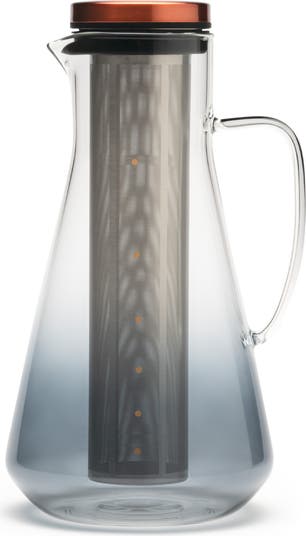 The Sio Cold-Infusion Pitcher is your perfect companion for cold brewing. Explore endless flavor possibilities and craft unique combinations tailored to your taste. Equipped with an extended fine mesh strainer, this pitcher is ideal for brewing ground coffee, loose-leaf tea, and herbal infusions. Enjoy cold brews that are less acidic and feature a smoother flavor profile for a superior tasting experience. To top it off, the copper-plated lid adds a touch of elegance, matching the copper volume indicators and rose-gold measuring scoop to create a well-balanced set. Each Sio Pitcher is handmade by our glass artisans.