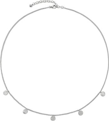 Small, hammered disc charms glimmer like seashells seen through sunlit water as they dangle from this handcrafted chain necklace.