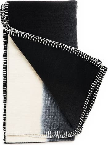 Siro Brown And White Ombre Textured Throw In Hand Spun Merino And Hand Stitched Hem
