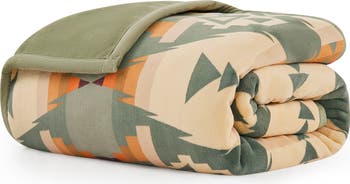 A cozy throw blanket is made from plush, double-faced fleece and decked in one of Pendleton's soothing geometric patterns.