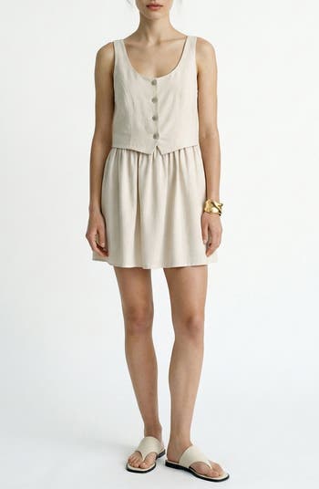 Casually achieve a two-piece look with one-and-done ease when you choose a linen-kissed dress that reads like a simple vest paired with a short skirt.