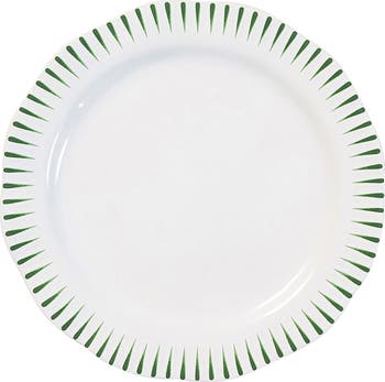 Bring artisanal beauty to your next dinner party with this softly scalloped dinner plate trimmed with stripes that symbolize the endless paths to come.