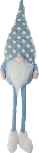 Add this adorable sitting gnome to your Spring or Easter decor this year. Designed wearing a blue hat with white polka dots, the hat has a bendable wire in it so you can position the hat however you like. Perfect to place on a tabletop or mantel in your home. Features: Spring gnome figure Wears a blue and white polka dotted hat Solid blue arms, legs and bottom Sitting gnome has dangling legs with p white shoes Long white faux fur beard Has a weighted bottom for stability Recommended for indoor use only Dimensions: 34”H x 10”W x 6”D Material(s): polyester/cotton/wire
