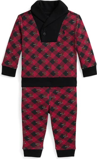 They'll look precious in this skate-and-check patterned set featuring a top and matching pants, both featuring ribbed trim that's soft and stretchy.