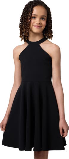 This halter neckline enhances the cute, contemporary style of this easygoing skater dress with keyhole back.