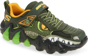 Perfect for any dino-loving kid, this reptilian-inspired lightweight sneaker features stretchy laces, an adjustable strap and light-up midsole.