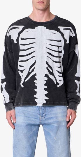 A graphic skeleton provides a whimsical anatomy lesson against the relaxed fit of this T-shirt cut from soft, faded cotton thermal.