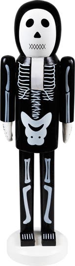 Add a spooky yet charming touch to your Halloween décor with this black and white skeleton Halloween nutcracker. Expertly crafted and designed to stand out, this unique Halloween decoration combines classic nutcracker styling with eerie skeletal details for a festive fright. The nutcracker features a bold black and white skeleton design, complete with painted bone accents and a haunting expression, perfect for Halloween displays or themed collections. Standing upright on a sturdy white base, this skeleton nutcracker offers excellent stability whether placed on a tabletop, mantel, shelf, or entryway. The detailed craftsmanship and hand-painted finish make it a captivating addition to any spooky setup, blending traditional holiday charm with macabre Halloween flair. Perfect for collectors and Halloween enthusiasts alike, this decorative skeleton nutcracker brings a gothic twist to the traditional nutcracker figure. Its neutral color palette allows it to seamlessly blend with a variety of Halloween themes, from creepy chic to haunted house styles. Use it as a standalone accent or incorporate it into a larger Halloween display for added drama. Elevate your seasonal decorations with this black and white skeleton Halloween nutcracker—a must-have for anyone looking to add a playful yet spooky character to their Halloween home décor. Product Features: Hand-painted finish Stands on an attached round wooden white base Mouth opens and closes with a back lever Recommended for indoor decorative use only Dimensions: 14"H x 4"W x 3.5"D Material(s): wood