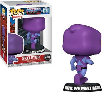 POP! Skeletor is here to drop some bizarre facts and run! Commemorate a pop culture sensation and expand your Masters of the Universe lineup when you make this exclusive �Until We Meet Again� POP! Skeletor the next addition to your POP! Memes collection. Vinyl figure is approximately 4.5 in (11.4 cm) tall.