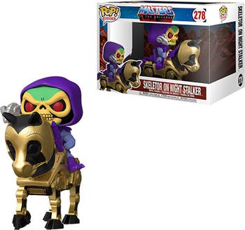 Skeletor w/Night Stalker (Masters of the Universe) Funko Pop! Ride. This Masters of the Universe Skeletor with Night Stalker Pop! Vinyl Vehicle #278 comes packaged in a window display box. Outside of boxes have some imperfections due to their large size. These are not "mint" items. Funko products can show minor paint or packaging imperfections, especially with larger items. Funko does not consider these defects. While we strive to deliver the best condition, we cannot accept returns due to minor flaws or minor package damage. Thank you for understanding.
