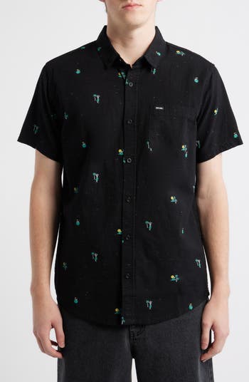 Washed cotton chambray patterned in tropical vignettes invites sunny-day breezes in a shirt made with a touch of stretch and a buttoned collar to keep you looking smart when you're feeling casual. Wear it smooth, rumpled, tucked or untucked to change up your style without losing your laid-back comfort.