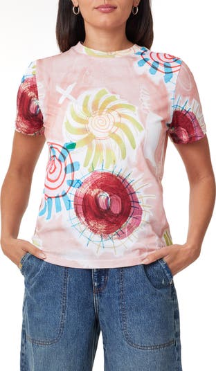 Artistic sketches of the sun bring summertime charm to a fitted tee cut from pure cotton for easy wear even as the temp rises.
