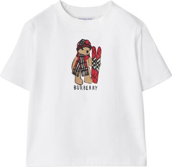 A crew-neck T-shirt in cotton jersey. The style is printed with our logo and Thomas Bear wrapped in cosy Burberry Check accessories. ||Rib-knit neckline|Press-stud shoulder|Printed Burberry lettering at front