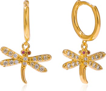 Beautiful crystal-embellished dragonfly-shaped drops bring playful flair to these hoop earrings you'll want to wear on the daily.