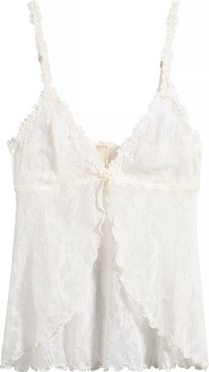 Sexy, seductive and sweet—it’s sheer perfection. This open, flyaway silhouette bares it all with its sheer stretch-lace fabric and unlined bust. It's adorned with a dainty rosette, lace trim throughout and a wavy hem for a flirty finish. It features adjustable straps and elastic at the underbust for additional support.