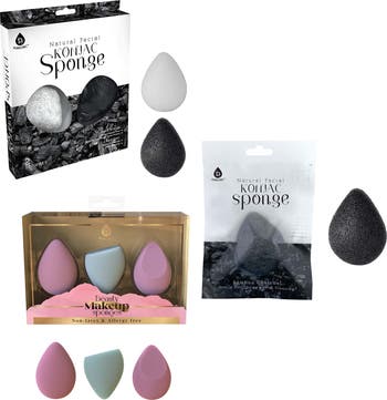 Skin & Beauty Essentials Bundle Konjac Sponge Duo, Charcoal Konjac Sponge & 3-Pack Makeup Sponge Set