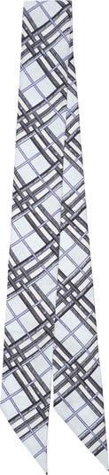A skinny scarf made in Italy from silk twill, printed with a check pattern that reverses to artwork depicting elements from our Equestrian Knight Design. Hand-drawn in the style of antique etchings, the Knight's armour features alongside the B shield and flag. ||Tapered tips|Printed Burberry lettering