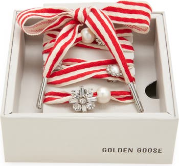 Golden Goose Skins Stripe Crystal & Faux Pearl Charm Shoelaces, Main, color, Red/ Beige