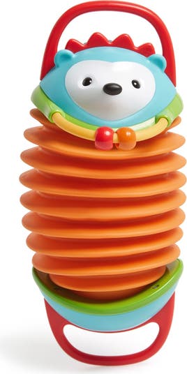 A whimsical hedgehog tops a bright accordion featuring easy-grab handles to spark your little one's musical inclinations, along with movable beads and rubberized details to soothe teething youngsters.