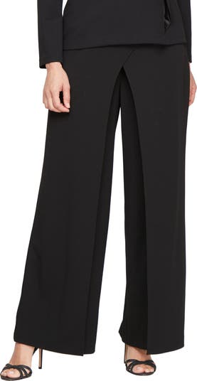 These crepe pants with a skirt overlay at the front offer the allure of a high-slit skirt with the comfort and ease of pants cut in an elegantly draped wide-leg silhouette.