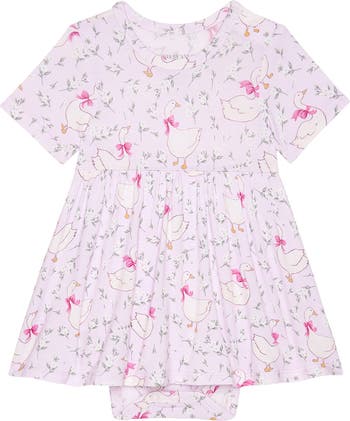 Baby will be picture-perfect in this stretchy skirted bodysuit that is made extra sweet with an adorable pattern.