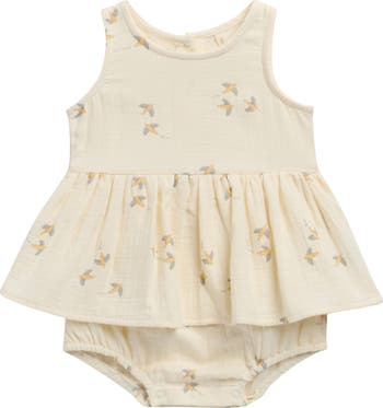 Baby will be looking adorable in this skirted romper made of airy organic cotton and detailed with a sweet bird print.