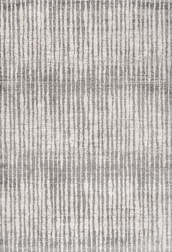 With geometric stripes creating a strie' effect, this modern rug is the perfect anchor for a contemporary or minimalist space. The overall pattern is a family-friendly solution for a living room, bedroom, hallway or entry. Mingled ivory and gray fibers give the pattern dimension.