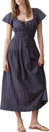 Bring on all the boho charm with this lightweight cotton midi dress that's framed by fluttery sleeves and cinched at the waist for fabulous shape.