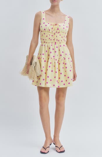 Be sweetly spotted in a darling dress cut to a leg-baring length from a summery linen-kissed fabric.