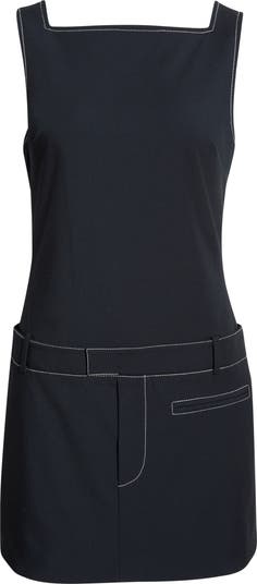 Channel your inner Twiggy in this swingy minidress marked by contrast topstitching and a signature drop waist that nods to iconic '60s style.