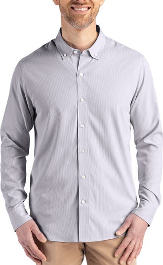 This lightweight, stretch-enhanced button-down shirt is partially made with recycled fibers and equipped with moisture-wicking performance for all-day dryness and comfort. A PFAS-free stain-resistant finish makes for worry-free easy care.