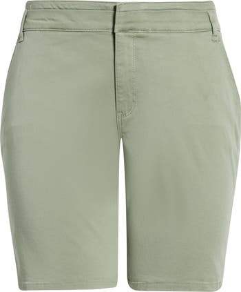 Greet those sunny days in style with these Bermuda shorts featuring a high double waist and longer hems that create a streamlined look with easy stretch for easy movement.