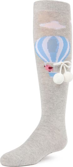Up, up, and away! Your girl's feet may be firmly planted on the ground, but these socks are set to take her on an adventure. A whimsical hot air balloon detail rising up into the clouds comes complete with two pompoms dangling off the side. Peep closely, and a darling little bluebird is perched on the basket, going along for the ride.