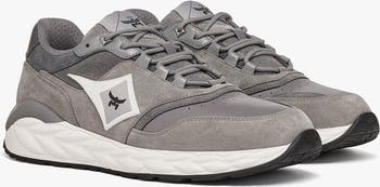 Italian calf suede low-top sneakers with calf leather trim and Laurel-patterned rubber outsole