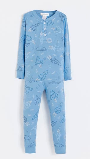 Snug-fit pajamas with long sleeves and legs made of printed pima cotton, with ribbed cuffs on the pants and shirt. It features a buttoned front pocket, making it easy to put on and take off the child. Made of soft pima cotton, it guarantees comfort and softness for a peaceful sleep. This is a charming and functional set for the child. The print also has glow-in-the-dark details, which glow when exposed to natural light.
