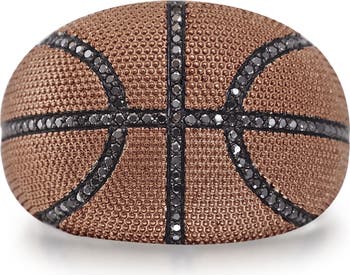 Slam Dunk Basketball Sterling Silver & Black Diamond Men Ring