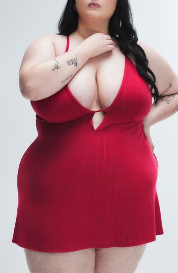 The sleekest touch. Savage x Fenty's mini slipdress features a flared silhouette, soft modal knit fabric, a cut-out detail at the bust and adjustable crisscross straps at back.
