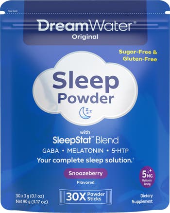 Dream Water features the sleepstat natural blend of 3 ingredients: GABA, Melatonin, & 5-htp. Gaba (gamma-aminobutryic acid) can help you relax. Melatonin can help you fall asleep. 5-Htp (5-hydroxytryptophan) can help you get quality sleep. Dream Water powers you with sleep to conquer your tomorrow. Dream Water Sleep Powder can help you get quality sleep at home, on the road, or in the air. Take 1-2 two Sugar-Free, Gluten-Free powder sticks anytime you need help with occasional sleeplessness, promoting deep, restful sleep. Great travel sleep companion. Dream Water is a melatonin sleep aid that helps govern the body’s internal clock that regulates your natural cycle of sleeping and waking. Our Sleep Powder can be used as a sleep drink mix with hot or cold water, or taken with no water. Dream Water provides an alternative to sleep aid tablets and pills. Dream Water Sleep Aid Supplements are your complete sleep solution for occasional sleeplessness and the perfect nighttime sleep aid supplement. Get better Zzz with Dream Water. These statements have not been evaluated by the Food and Drug Administration. This product is not intended to diagnose, treat, cure, or prevent any disease.