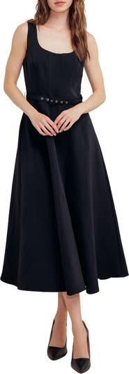 A grommet-embellished belt brings the perfect touch of modern edge to an A-line dress that's an optimal choice for any occasion.