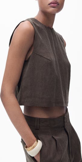 Perfect with your high-waist looks, this lightweight crop top is made from a drapey lyocell-rich blend and features a back button placket for a throwback look.