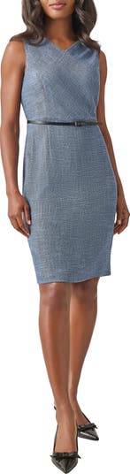 Update your office style portfolio with this well-structured shift dress cinched with a coordinating belt that adds the perfect touch of contemporary appeal.