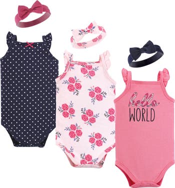 Hudson Baby bodysuits and headbands are an essential part of baby's wardrobe. Our bodysuits feature adorable prints, embroideries, stripes and solids and provide a comfortable base layer that is great for pairing with pants, shorts, or even wearing under outfits. Our bodysuits are comfortable and cozy for all-day, everyday wear for your little one. Our matching headbands make it easy and convenient for parents to accessorize their little ones.