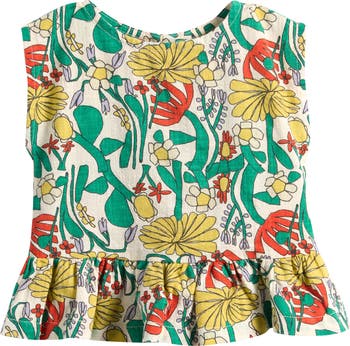 Baby will exude organic cuteness in this sleeveless top blooming with color and trimmed with a frilly ruffle.