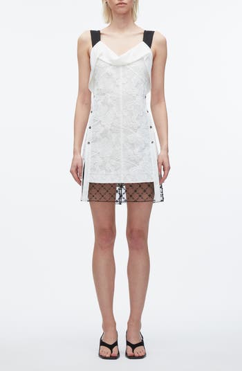 Mesh trim and floral lace add abundant texture to this undeniably romantic minidress.