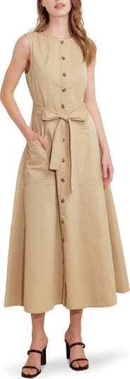 This sleeveless cotton maxi dress redefines minimalism with elevated seaming handy pockets and a flowing silhouette.