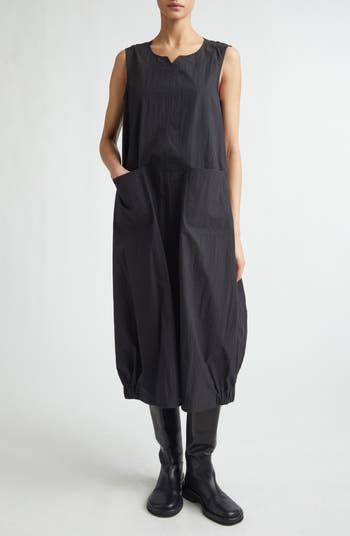 Exaggerated proportions, sculptural volume—Melitta Baumeister continues her exploration of each in this lightweight cotton-nylon midi dress with a dramatic cocoon shape.